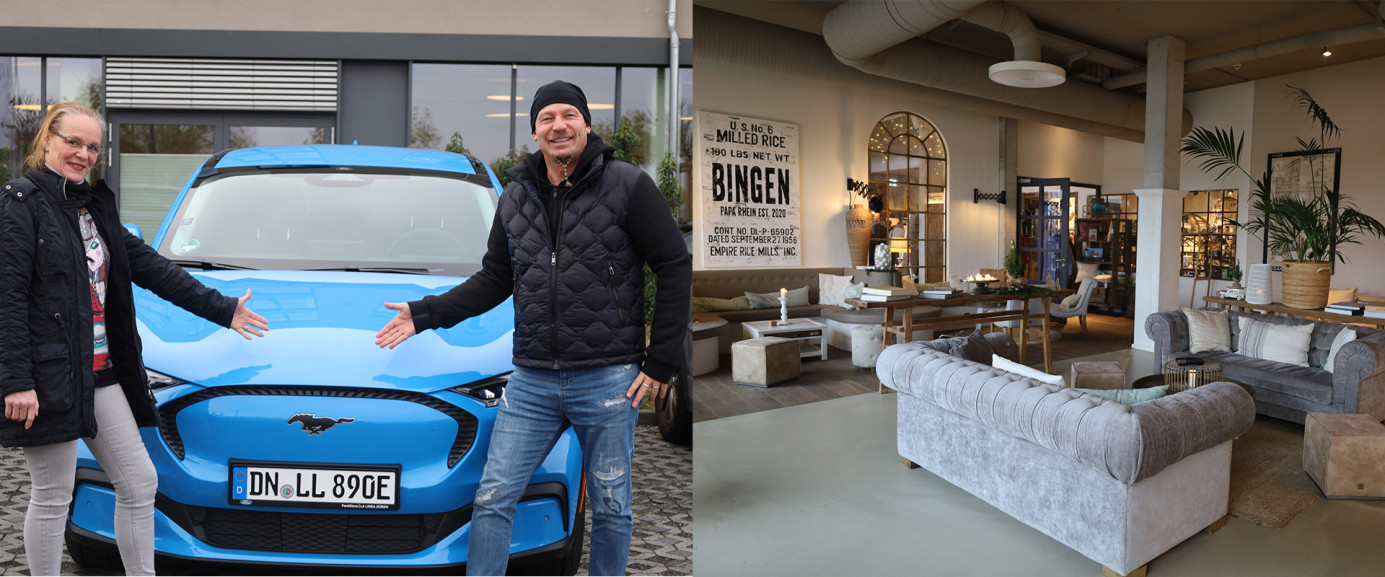 Nicola und Stefan Deutscher (beide 52 Jahre/ aus Remscheid) fahren in einem Ford Mustang Mach-E im nicht ganz unauffälligen Grabber Blue Metallic vor. Nicola Deutscher besitzt einen Volvo XC40 in der Hybrid-Version, Stefan Deutscher fährt einen Range Rover Velar mit reinem Verbrennungsmotor. „Ein tolles Auto mit guten Fahreigenschaften und reichlich Energie. Der Mach-E hat ordentlich Zug und macht wirklich Spaß“, sagt Nicola Deutscher. Diesen Eindruck kann Stefan Deutscher nur bestätigen. Allerdings wünsche er sich bessere Rahmenbedingungen. „Ich habe mit Elektromobilität grundsätzlich kein Problem. Allerdings fehlt mir noch das Gesamtkonzept von Industrie und Politik. Deshalb bleibt mein Range Rover Velar erstmal die klare Nummer eins. Aber der Mach-E ist schon ein Kunstwerk. Das muss man schon sagen. Vor allem die Farbe ist genau meins.“ Stefan Deutscher ist übrigens ein geübter Mustang Fahrer und besaß diesen schon in der klassischen Benziner-Variante. „Das war für meine Nachbarn nicht immer lustig. Gerade Sonntagsmorgens. Mit dem Mach-E gibt es garantiert weniger Ärger.“