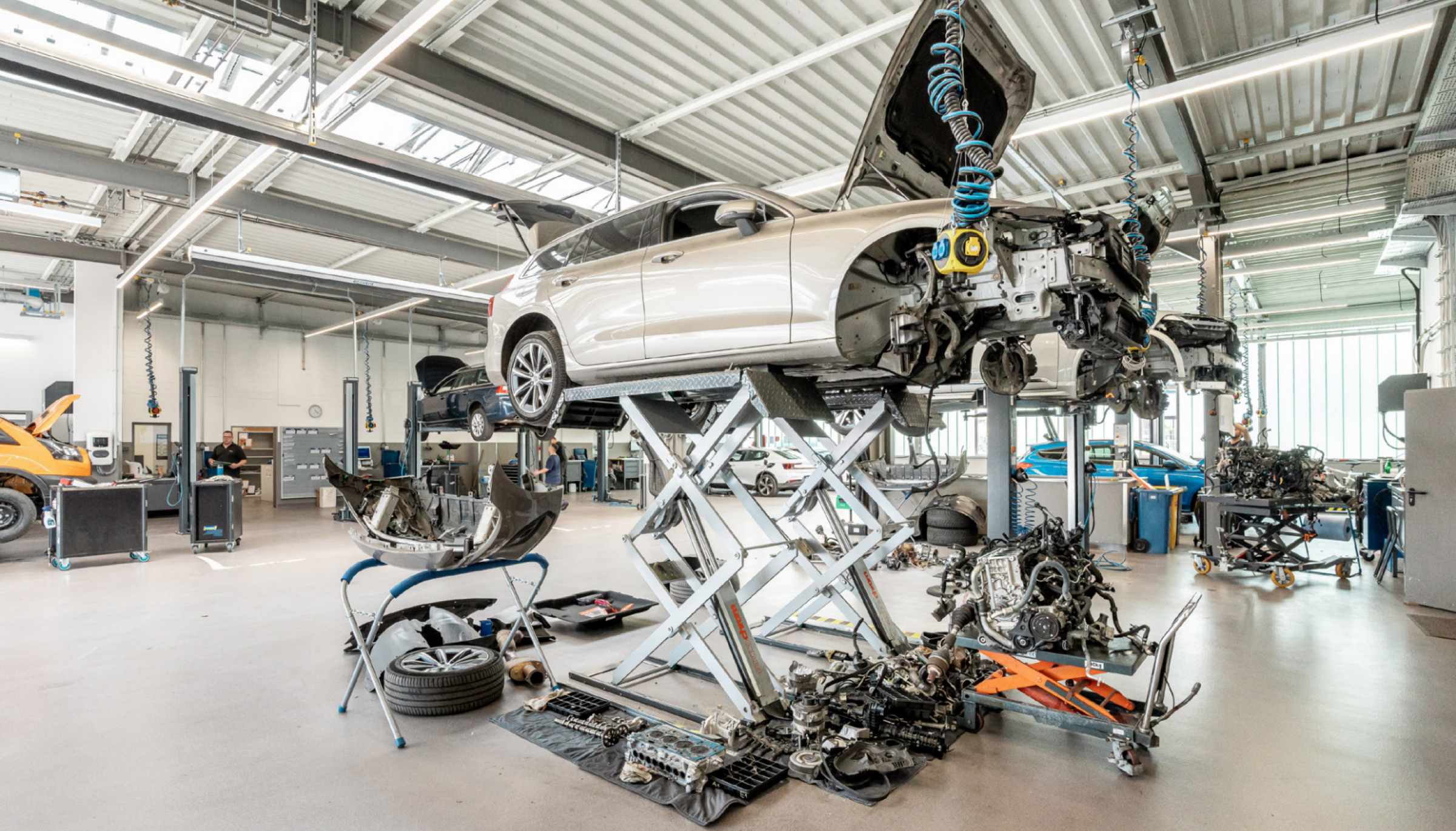 Die Kombination aus höchstem Service-Niveau und maximaler Schnelligkeit erfordert viele Optimierungen. Das beginnt bei der Abgabe des Fahrzeugs, die direkt beim auf die Minute reservierten Inspektions-Team erfolgt. Weitere Zeit wird gespart, indem beispielsweise Motoröl computergesteuert und millilitergenau für das Auto abgefüllt wird. Auch an Elektrofahrzeuge wurde gedacht; sie können an jeder Hebebühne ans Stromnetz angeschlossen werden. Hinzu kommt, dass jedes Detail auf dem neuesten Stand der Technik ist, wie beispielsweise Hebebühnen, Werkzeugkisten sowie Strom- und Druckluftanschlüsse. „Die neue Werkstatt verfügt jetzt zudem über Tageslicht. Das ist gut fürs Gemüt und spart Strom – den wir auch durch eine Fotovoltaik-Anlage auf dem Dach selbst erzeugen“, ergänzt Röhl.